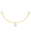 Delikatny łańcuszek do piercingu, wykonany z srebra próby 925, pokryty 18-karatowym złotem, ozdobiony błyszczącą cyrkonią klasy AAA. Jego minimalistyczna forma z subtelnym detalem w centrum dodaje lekkości i elegancji każdej kompozycji biżuterii. Symbol czystości i światła, idealny do tworzenia stylowych połączeń w uchu.