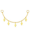 Nowoczesny, elegancki i niezwykle lekki – ten złoty łańcuszek do piercingu przyciąga wzrok subtelnym ruchem pięciu geometrycznych zawieszek. Wykonany z srebra próby 925, pokryty 18-karatowym złotem, emanuje blaskiem i stylem, który idealnie łączy minimalizm z wyrazistością.