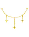 Zjawiskowy łańcuszek do piercingu, który lśni jak rozgwieżdżone niebo. Wykonany ze srebra próby 925 i pokryty warstwą 14-karatowego złota, ozdobiony trzema delikatnymi zawieszkami w kształcie gwiazdek. Każdy ruch głowy sprawia, że biżuteria subtelnie połyskuje, dodając aurze elegancji i tajemniczości. Idealny do helixa, lobe lub concha – wspaniale łączy się z innymi złotymi kolczykami.